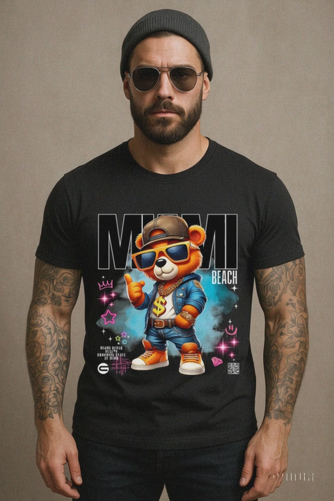 Men’s Rhinestone Graphic T-Shirt – Miami Teddy | Grooveman Streetwear
