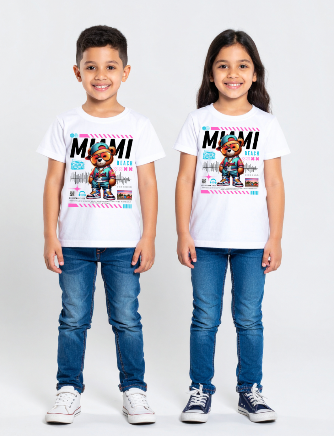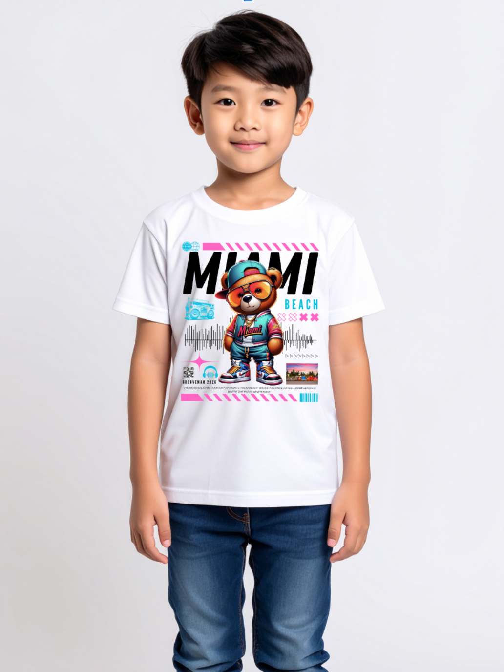 Get ready for your little one to groove in style with our exclusive Kids Miami Art T-Shirt from Grooveman Music! Made with 100% cotton and featuring a vibrant DTG print, this shirt is a must-have for any fashion-forward kid. With its unique and sought-after design, it's sure to be their new favorite tee!