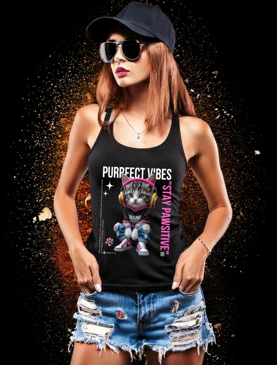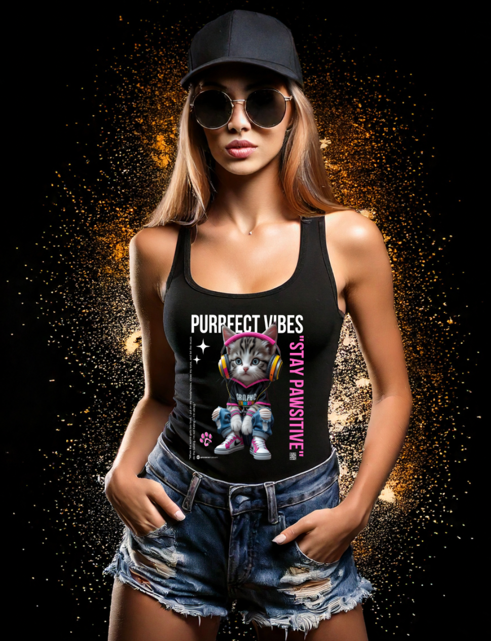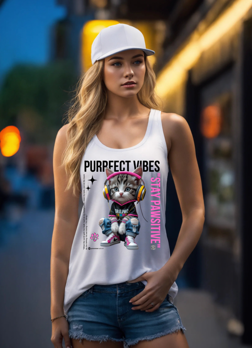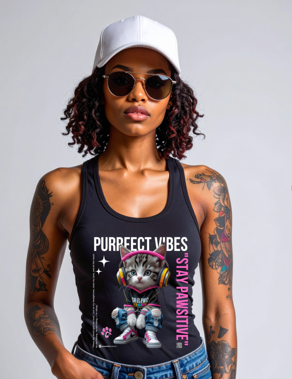 Purrfect Vibes Cat Art Tank Top | Grooveman Music TM