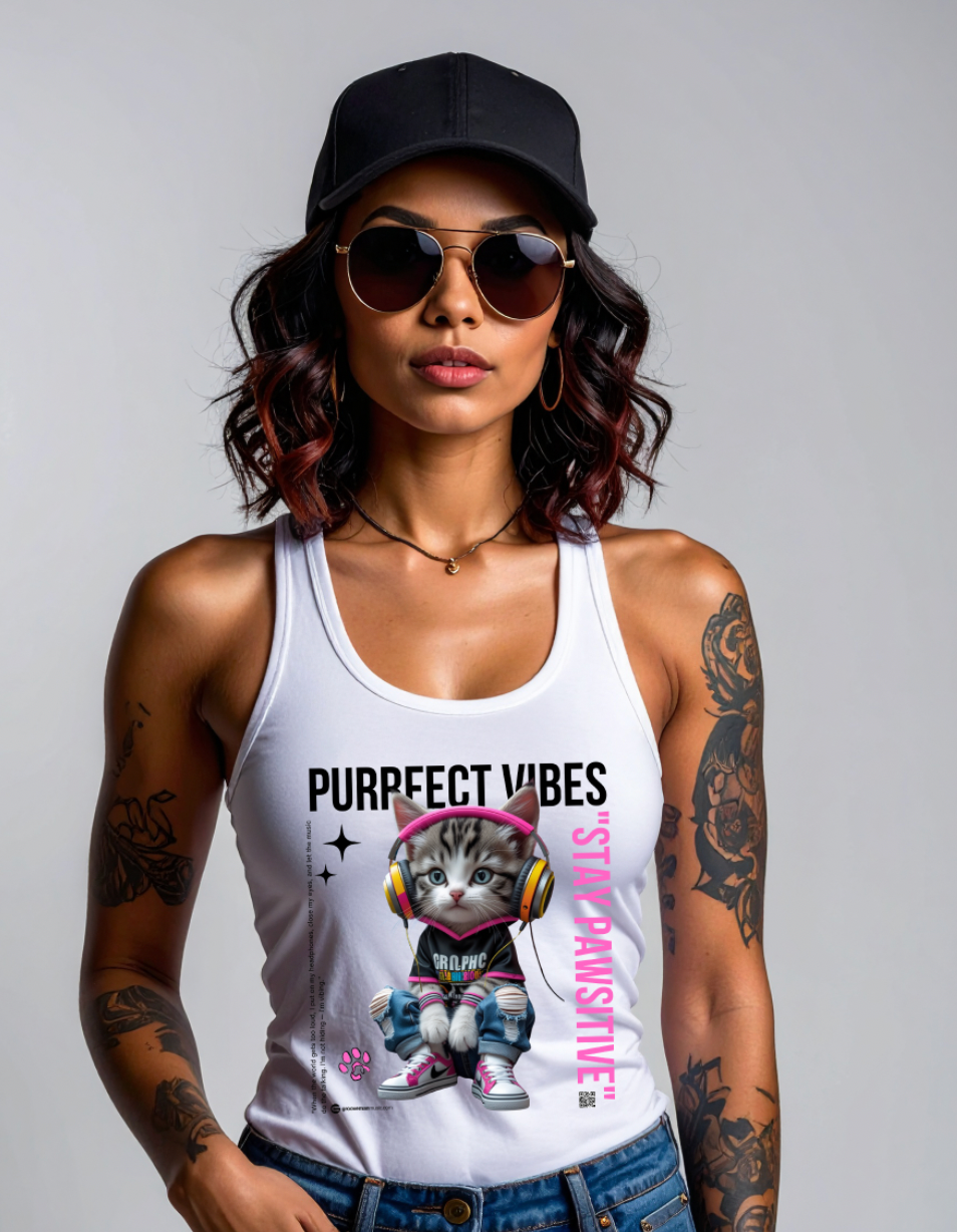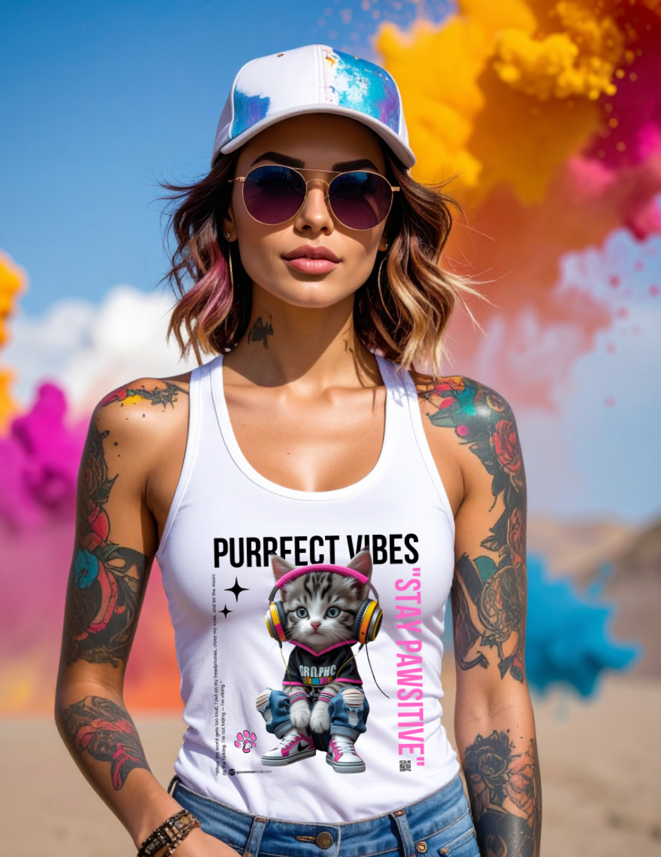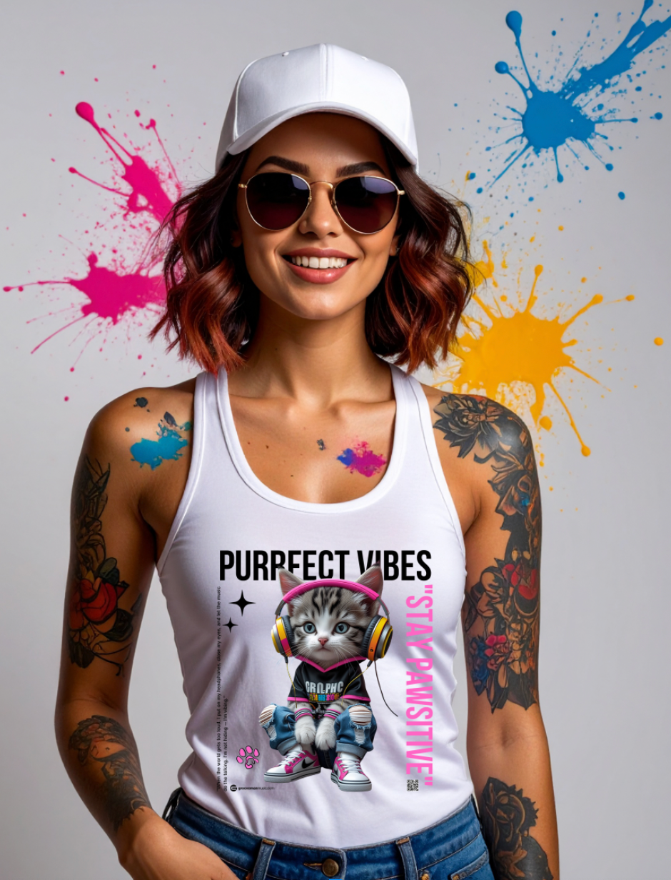 Purrfect Vibes Cat Art Tank Top | Grooveman Music TM