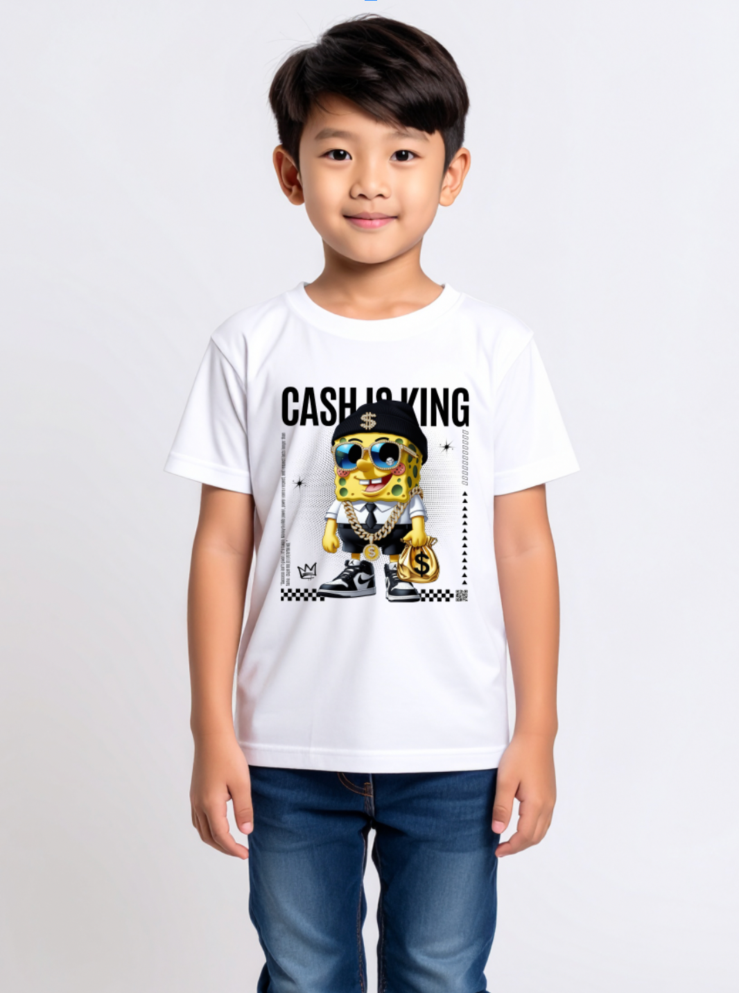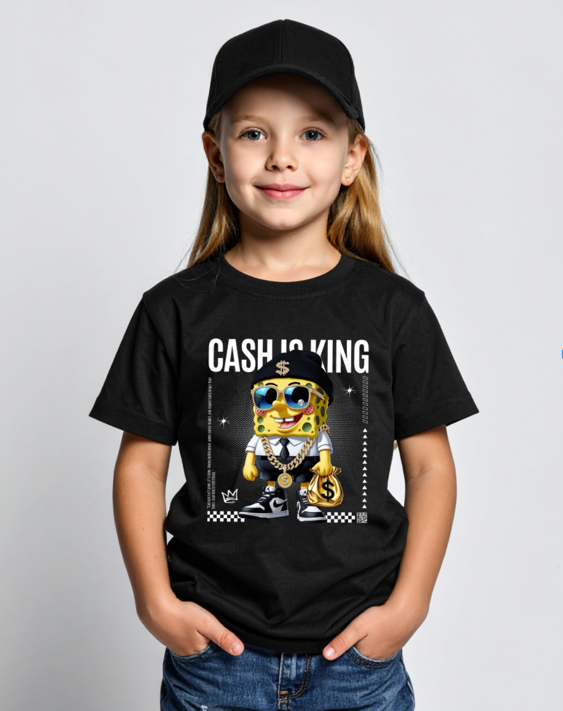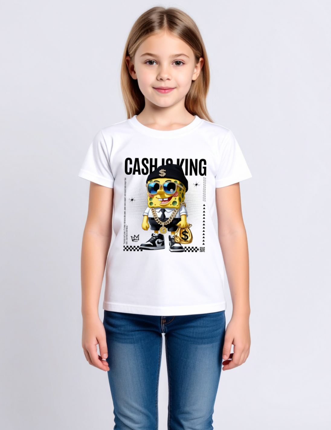 Kids Sponge Yellow Cash is king Art T-Shirt Grooveman Music Exclusive