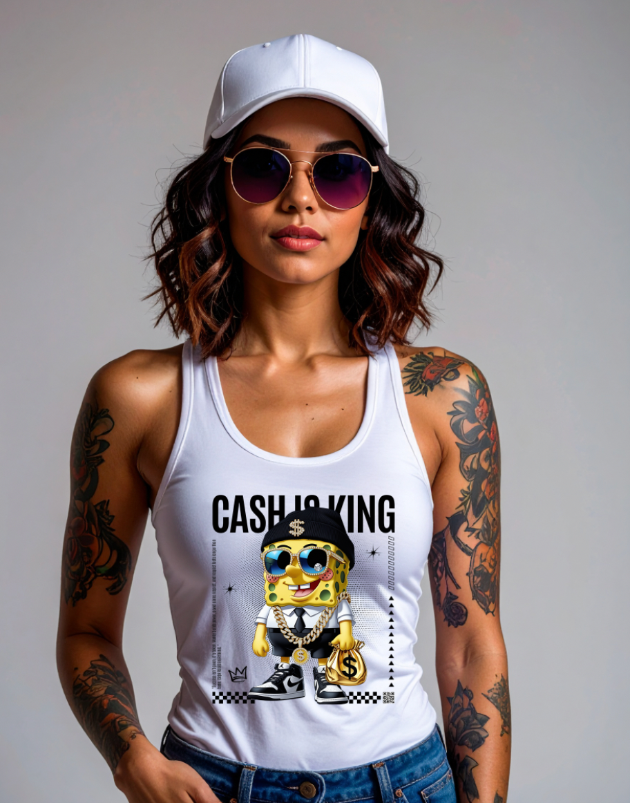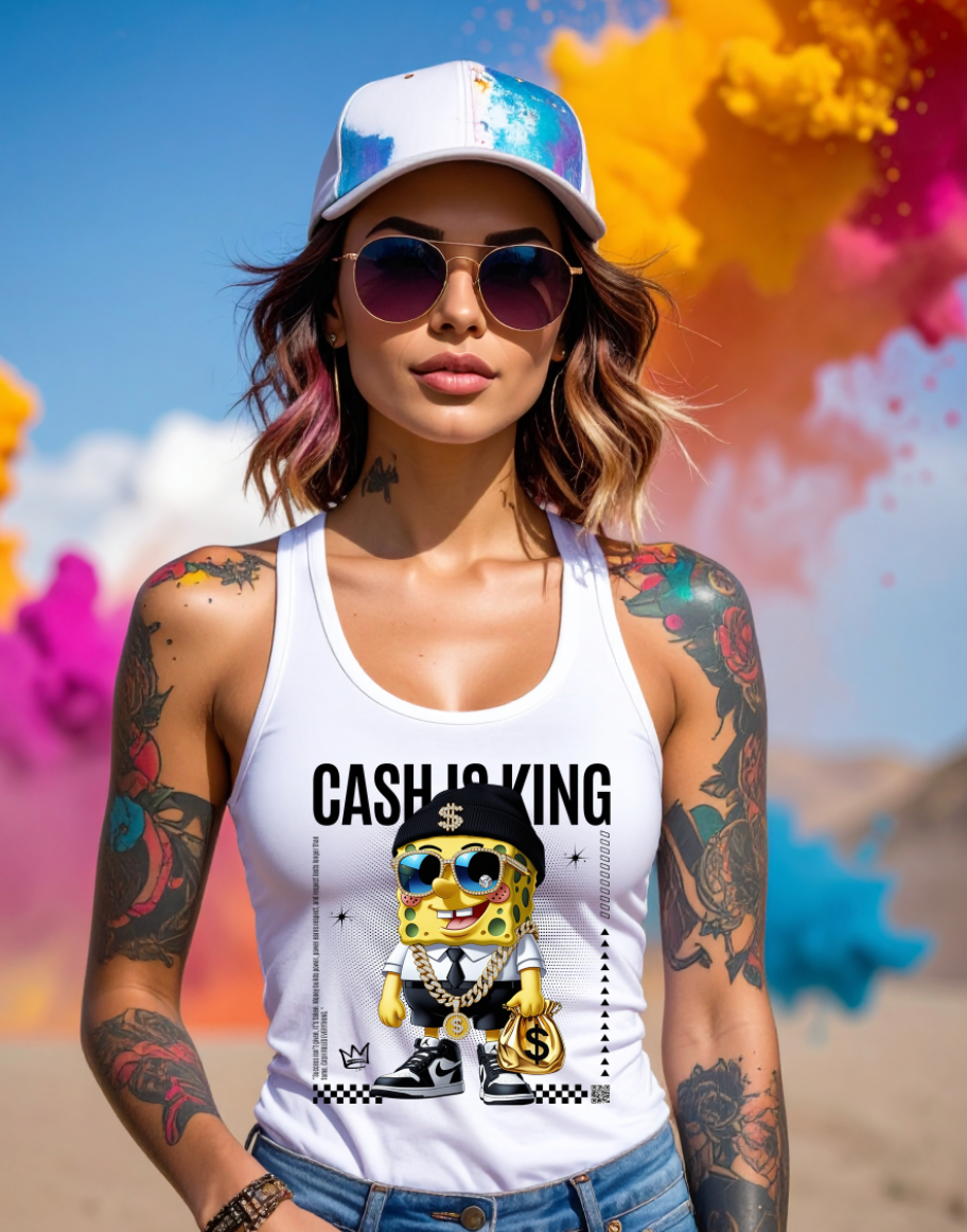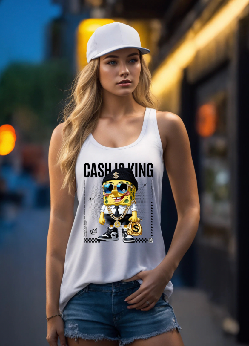 Sponge Yellow “Cash Is King” Women’s Art Tank Top | Grooveman Music™ Graphic Streetwear