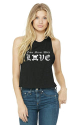 Features: Sideseamed. Relaxed fit. Racerback. Raw edge seams.